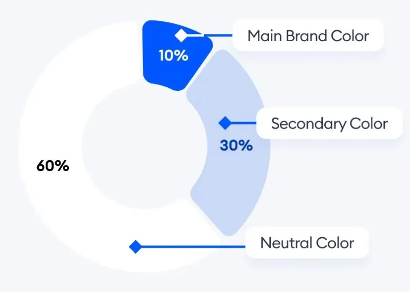 - 30%: Secondary Color – used to add contrast to the dominant color (e.g., sidebars, cards, buttons).